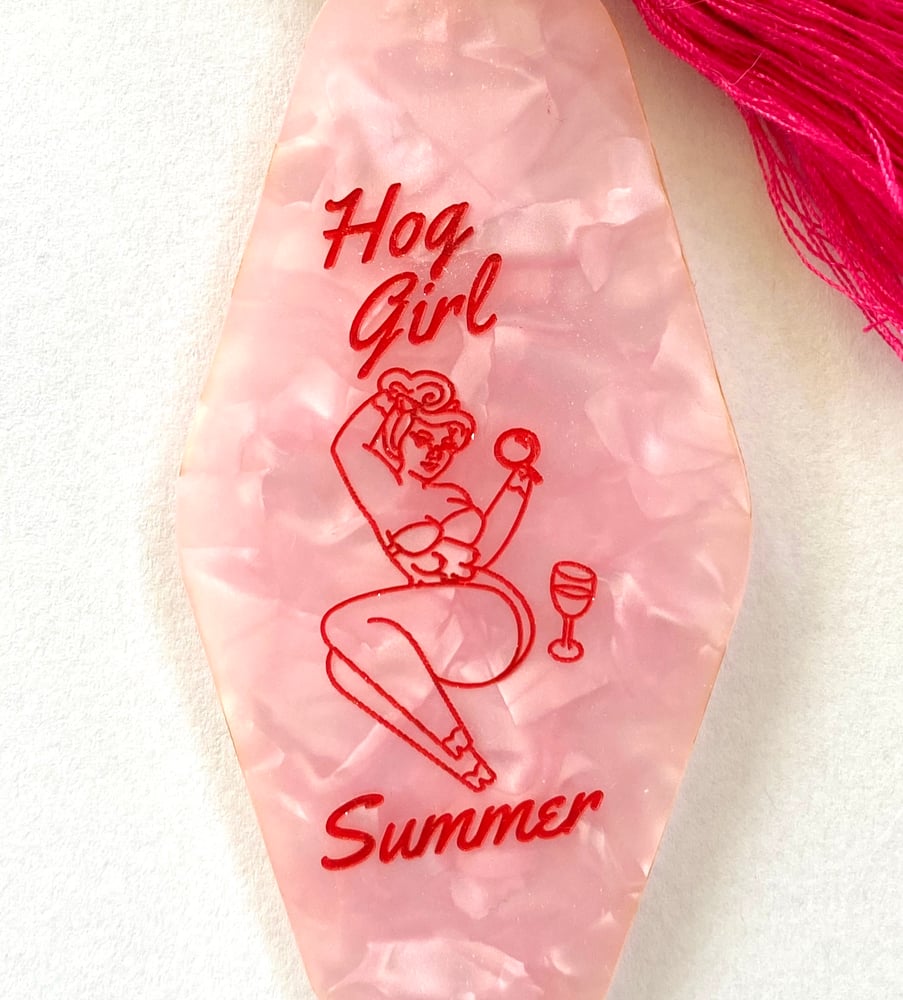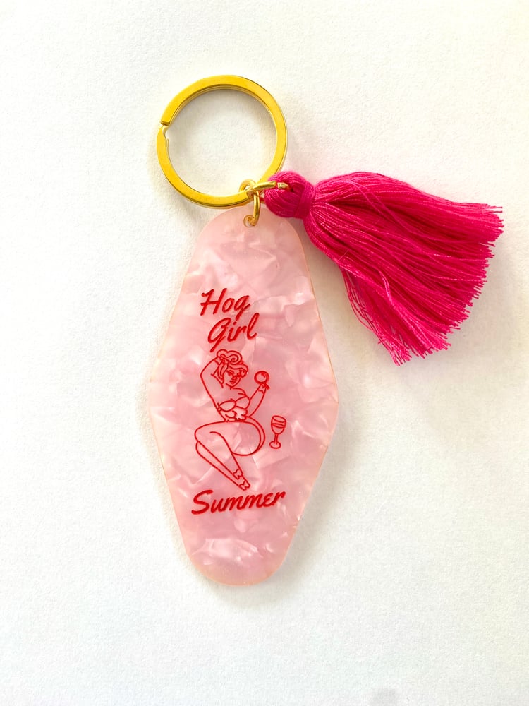 We heard your cries for Hog Girl Summer merch! Celebrate the season with a pink and pearly key tag.